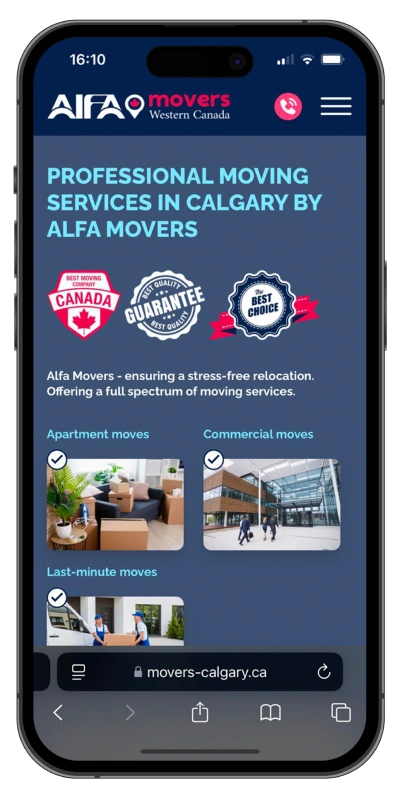 Корпоративный сайт для компании по переездам в г. Калгари, КанадаРазработкаВеб-дизайнФирменный стильТехническое SEO