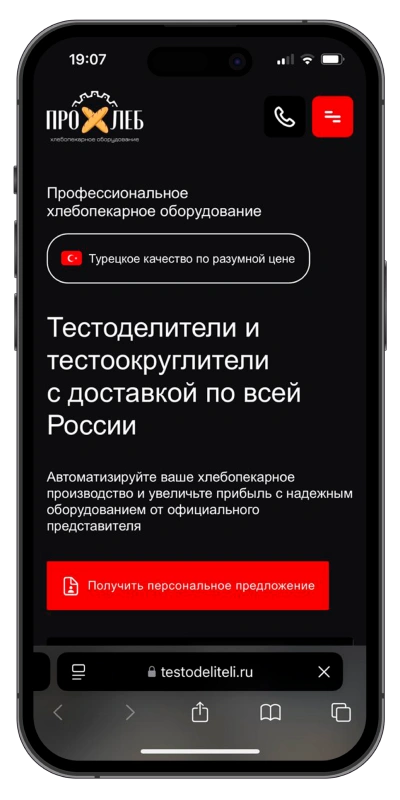 Лендинг для продажи профессионального хлебопекарного оборудованияРазработкаВеб-дизайнТехническое SEO